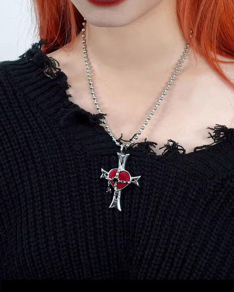 【OCTO VITA】Evil Girl Crazy Flower Cross Heart Necklace pg697
