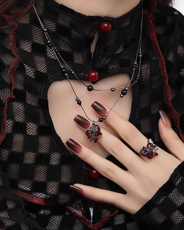 Red Love Rose Layer Necklace